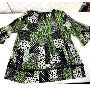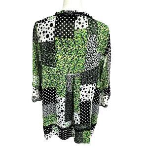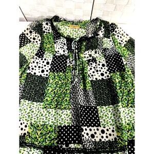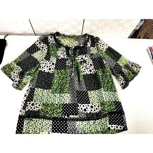 This beautiful green blouse from Notations is a must-have for any fashion-forward woman. The patchwork design adds a touch of artsy style, while the ruffled sleeves give it a playful, country vibe. The tie in front is the perfect finishing touch, pulling the blouse together and highlighting your curves. Made for plus-size women, this blouse is available in XL size and is sure to fit comfortably. The closure is a tie, which adds an extra touch of elegance and convenience. Whether you're dressing up for a night out or dressing down for a casual day, this blouse is perfect for any occasion...29.5"T x 23.5"W x 17" Arm