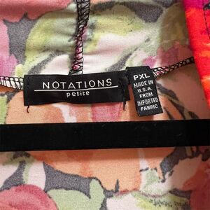 Keywords: Notations, PXL, petites, multicolor, blouse, women, floral, short sleeve, basic style, imported fabric, made in USA, new with tags, casual, office wear.
