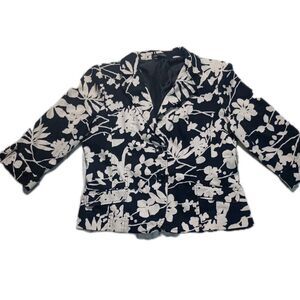 Notations Petite Lightweight Blazer 2 Button 3/4 Sleeve Black White Floral Sz.PM