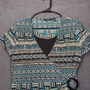 Notations Petite Wrap-Style Top Blouse Buckle Geometric Print Womens Size PL