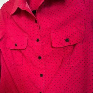 Notations Petite Polka Dot Button-up Blouse- Red/Black Size Petite Small