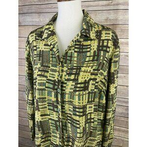 Notations Plus 1X NWT Button Front Blouse Long Sleeve Green Yellow Collared Top