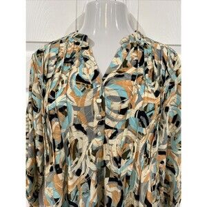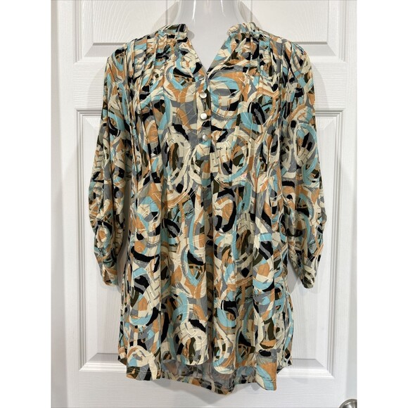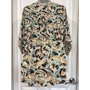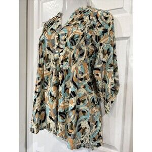 Notations Plus Size 1X Turquoise Gray Abstract Print Blouse Tunic Stretch Knit