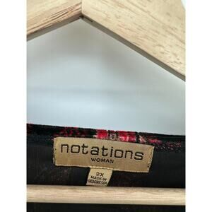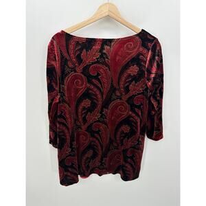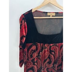 Notations Red Black Paisley Velvet Top 2X Square Neck 3/4 Sleeve Whimsigoth Dark