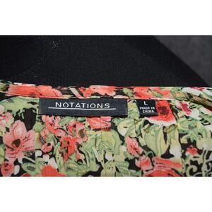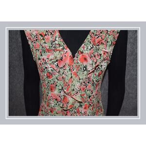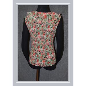 Notations Rose & Green Floral Print Ruffled V-Neck Sleeveless Summer Blouse SZ L