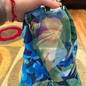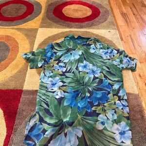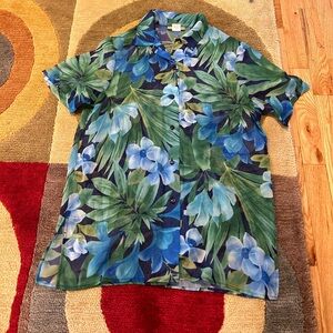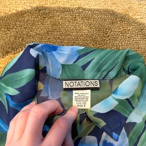 Notations Sheer Button Down Short Sleeve Tropical Print Hawaiian Shirt Women’s S