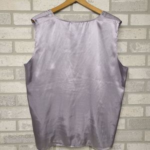 Notations metallic silver sleeveless blouse. Higher neck with a slight scoop.