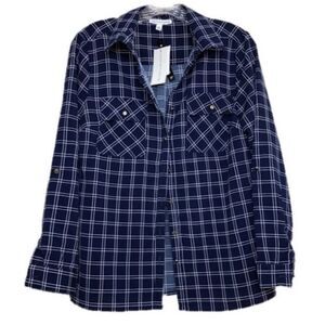 Notations Shirt Blue White Button Down Window-Pane Adjustable Sleeve