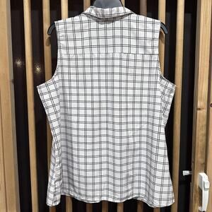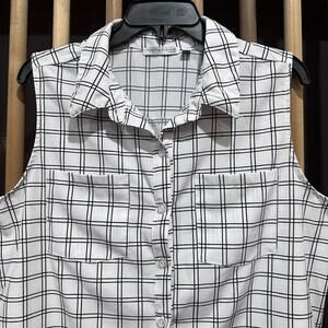 Notations Shirt Plus 2X White Black Windowpane Plaid Sleeveless Button Front