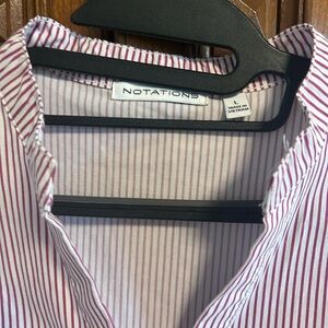 Chic Notations top with stripes. Ideal for versatile styling. Good condition size is large Striped design Flutter short sleeves