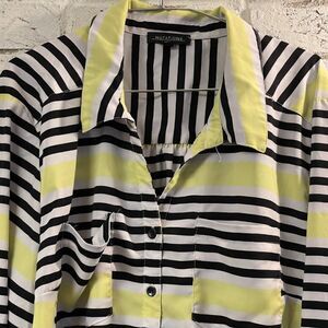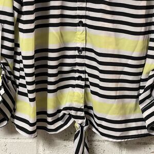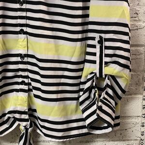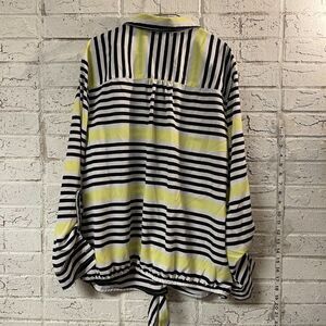 Notations Striped blouse w/ tie front & gathered at waist XL