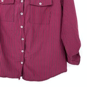 Notations Tab Sleeve Button Front Blouse Womens Sz Small Pink Black Striped NEW