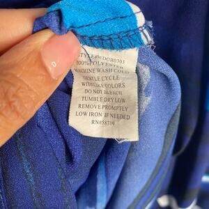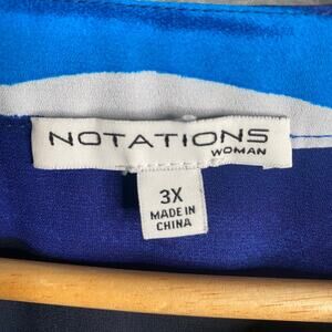 Notations Top 3X Button Down 3/4 Sleeve Blue Striped Abstract Career Casual