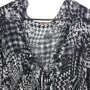 Notations Top Womens 2X Tie Front Ruffle Neck Dark Artsy Abstract Goth Retro