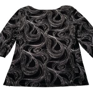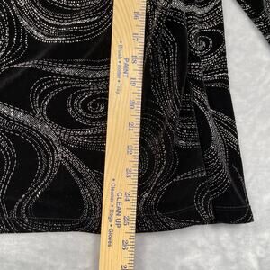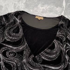 Notations Top Womens 3X Black Velour Velvet Silver Glitter Faux Wrap Buckle