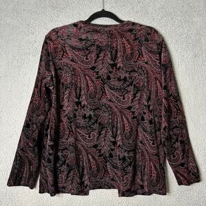 Notations Top Womens XL Black Red Sequin Long Sleeve Layered Look Floral Blouse Top