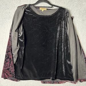 Notations Top Womens XL Black Red Sequin Long Sleeve Layered Look Floral Blouse