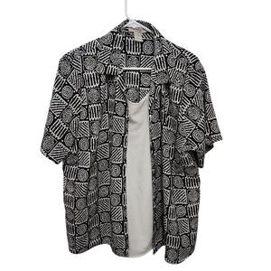 Notations Vintage Geometeric Short Sleeve Blouse with Built In Tank 1X