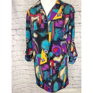 Notations Vintage Retro Art Deco Funky Fun Abstract Print Bright Button Down Tun
