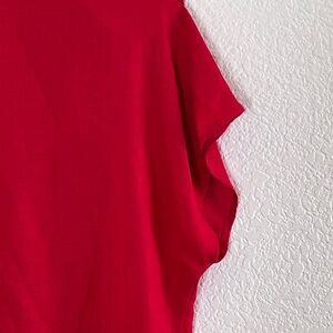 Notations | Vintage polyester red short cap sleeves button front blouse shoulder pads