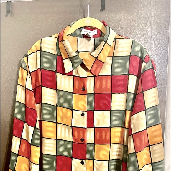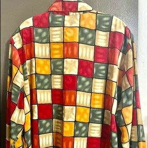Details: Long sleeves with button closure, button down front closure, shoulder pads and side slits.