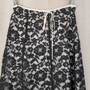 Notations Woman Petite MEDIUM Black Lace Over Ivory Knee Length Skirt Whimsygoth