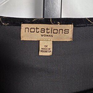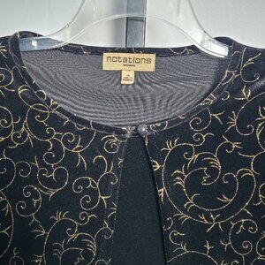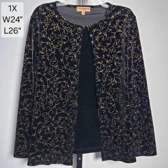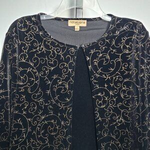 Notations Woman Plus Size 1X Top Black Velvet Gold Glitter Jacket Mock 2-Piece