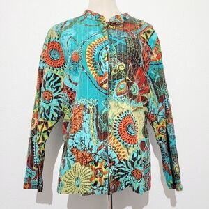 Notations Woman Quilted Zip-Up Jacket 100% Cotton Size 1X Beautiful Floral Color