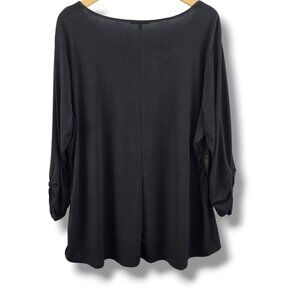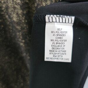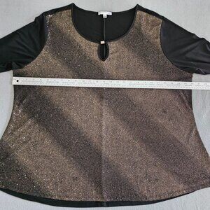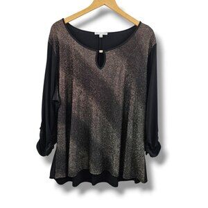 Notations Woman Top 3X Black Gold Sparkle 3/4 Sleeve Keyhole Neck Rhinestone
