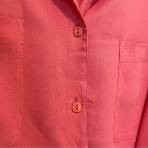 Elevate your wardrobe with this stylish pink button-up top. Perfect for any occasion, this top offers both comfort and elegance.