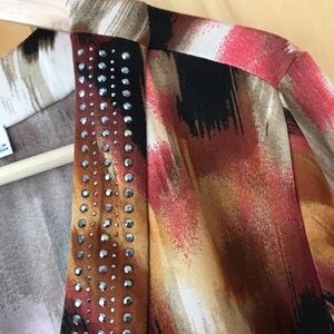 Notations Woman abstract print studded v-neck 3/4 sleeve tunic plus size 1X. Gently used. 95% polyester, 5% spandex.