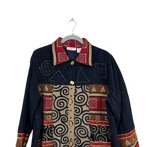 Notations Women Corduroy Jacket Beaded Embroidered Patch Boho Black Red Sz 14/16