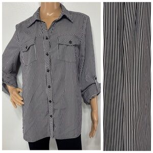 Title: Notations Women’s Black/White Striped Button Down Shirt Size M