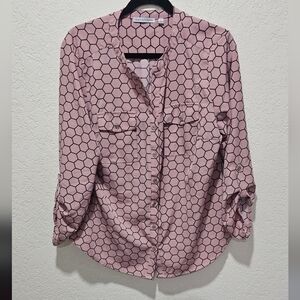 Notations Women's Blouse Button down Geometric Patterned Size L Office Work