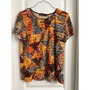 Notations Womens Blouse Size XL Orange Geometric‎ Pattern Ruffles