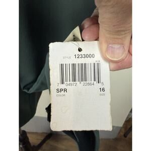 The Notations Women's Blouse in size 16 is a stylish and versatile addition to any wardrobe. This button-up blouse features a high neck and long sleeves, making it suitable for various occasions such as workwear, casual outings, parties, and more. The pinch-pleated front adds a stylish touch to the classic design, while the lightweight polyester fabric ensures comfort for all seasons. With a solid green color and a professional theme, this blouse is perfect for the office or career-oriented events. Easy to care for with machine washable instructions, this blouse from Notations is a must-have for the modern woman.