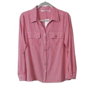 Notations Women’s Button Up Collared Red White Stripe Shirt Sz S NWT