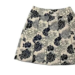 Notations Women's Ecru & Black Poly Floral A-Line Skirt GUC sz L