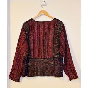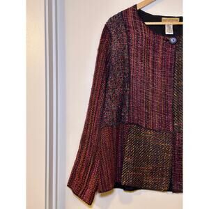 Notations Womens Multicolor Tweed Patchwork Lagenlook Single Button Jacket PXL