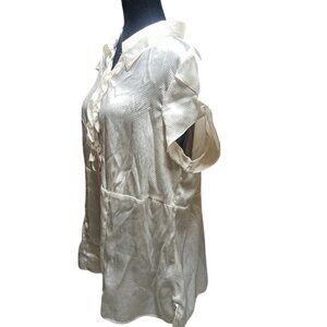 Preowned-This Notations Women's 2X Ivory Ruffled Short Sleeve Blouse is a stylish and feminine addition to any woman's wardrobe. Made for plus-sized women, this blouse features ruffled accents that add a trendy touch to the classic ivory color. The short sleeves make it perfect for the warmer seasons, while the flattering silhouette is sure to make a statement in any outfit. Perfect for both casual and dressy occasions, this blouse combines comfort and style effortlessly.