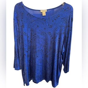 Notations Women’s Plus Size Blue Black Sparkle Top Blouse Crew Neck Sz 3X
