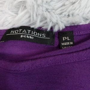 Notations Womens Shirt Blouse Black Petite Large Purple Stretch Sheer Bottom