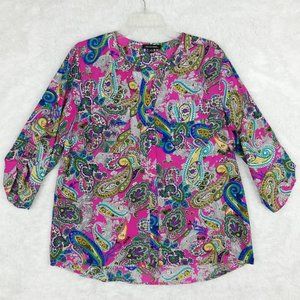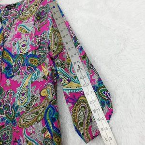 Notations Womens Shirt Button Down Paisley Print 3/4 Sleeve Mandarin Collar L