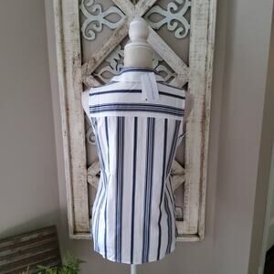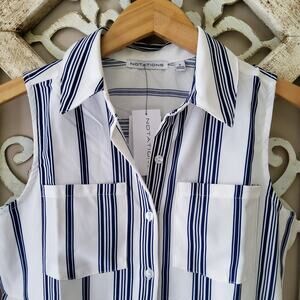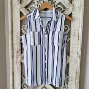 Blue stripe sleeveless collar button front pocket blouse tank top by Notations in a size small.