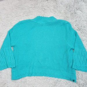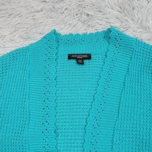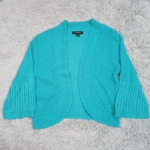 Notations Womens Sweater Cardigan Blue Teal PM Open Front Cropped Crotchet
