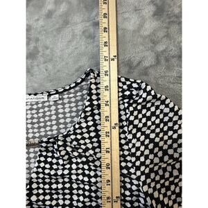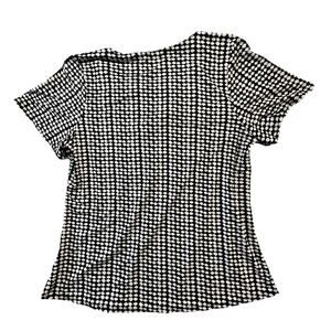 Notations Women’s XL Black White Geometric Print Top Gold Bar Neck Short Sleeve