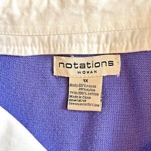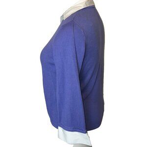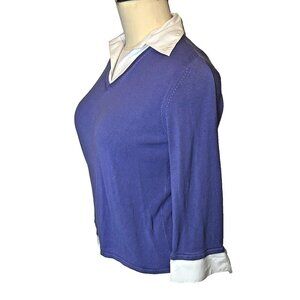 Notations Womnen's 1X Purple Sweater with White Shirt Collar and Cuff Sleeves
