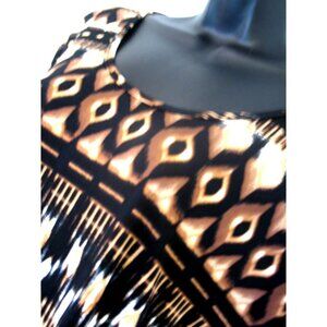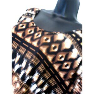 Notations blouse. Animal Print scoop neck with Fringes, Short sleeve XL. Polyester/Spandex.
