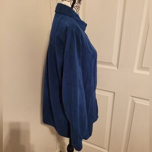 Beautiful top for any occasion. Made of polyester materials. Very soft. Great quality and condition. Tag says size large.