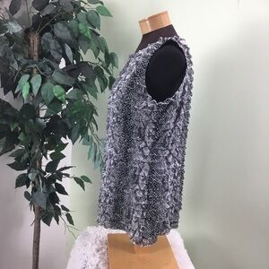 Notations large black and white layered ruffled sleeveless top Fully lin…